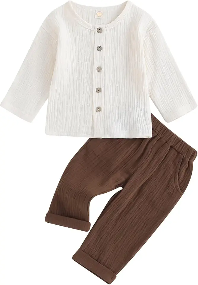 Toddler Boys Girls Long Sleeve Button Down Shirt and Pants Set