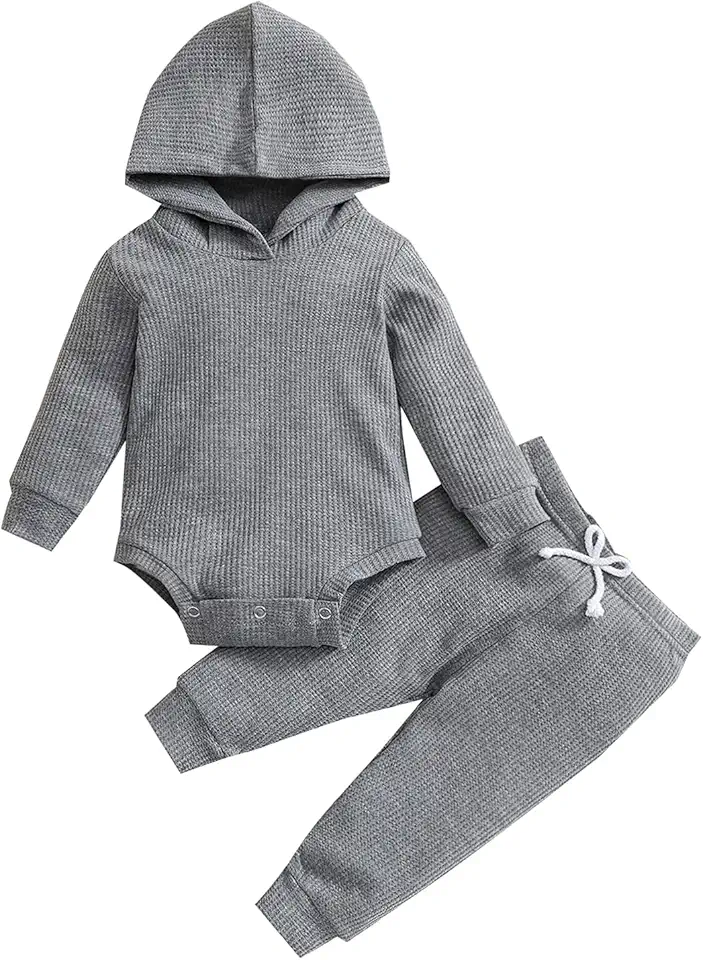 Newborn Unisex Baby Clothes Hooded Bodysuit and Stretchy Pants Set